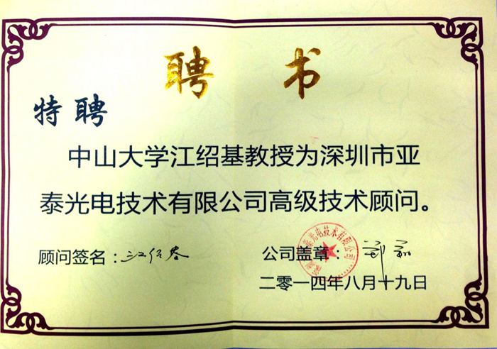 中山大學江紹基教授聘書