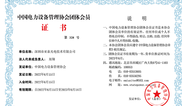 賀:深圳市亞泰光電成為中國電力設備管理協會會員單位