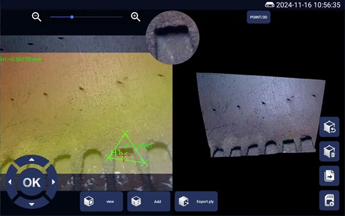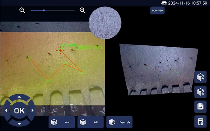 亞泰光電三維內(nèi)窺鏡的核心突破在于高精度三維建模與實(shí)時(shí)測(cè)量。其搭載的雙目立體成像技術(shù),可生成3D點(diǎn)云圖、深度圖和剖面圖,最小測(cè)量精度達(dá)到0.01mm,遠(yuǎn)超傳統(tǒng)二維檢測(cè)的局限。